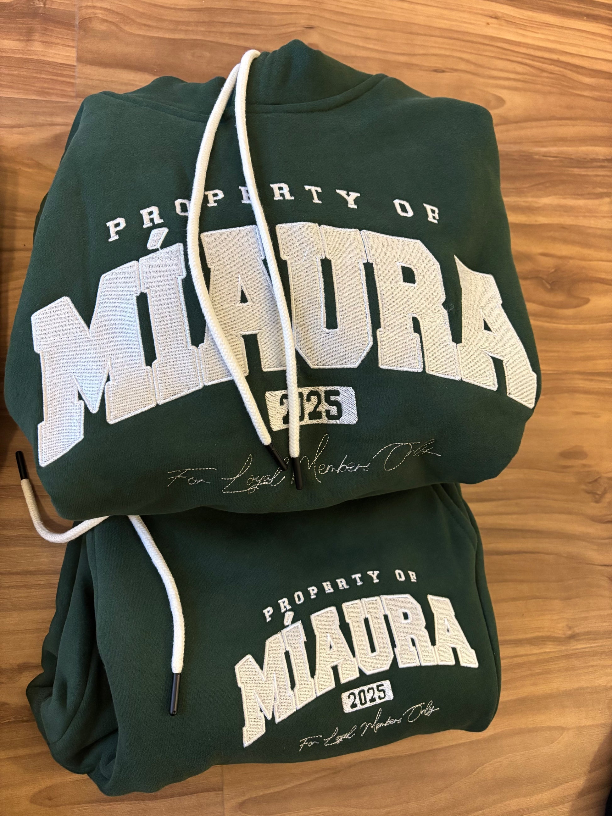 A premium embroidered sweatsuit from Míaura, designed with clean lines and elevated comfort in mind. Crafted from a heavyweight, ultra-soft cotton blend, the set features a tailored hoodie and matching joggers that balance relaxed wearability with a refined silhouette. Intricate embroidery showcases the Míaura name with subtle detailing, adding texture and distinction without overpowering the design. Finished with a structured waistband and thoughtful stitching throughout, this sweatsuit reflects effortless luxury—made for everyday wear, styled to stand apart.